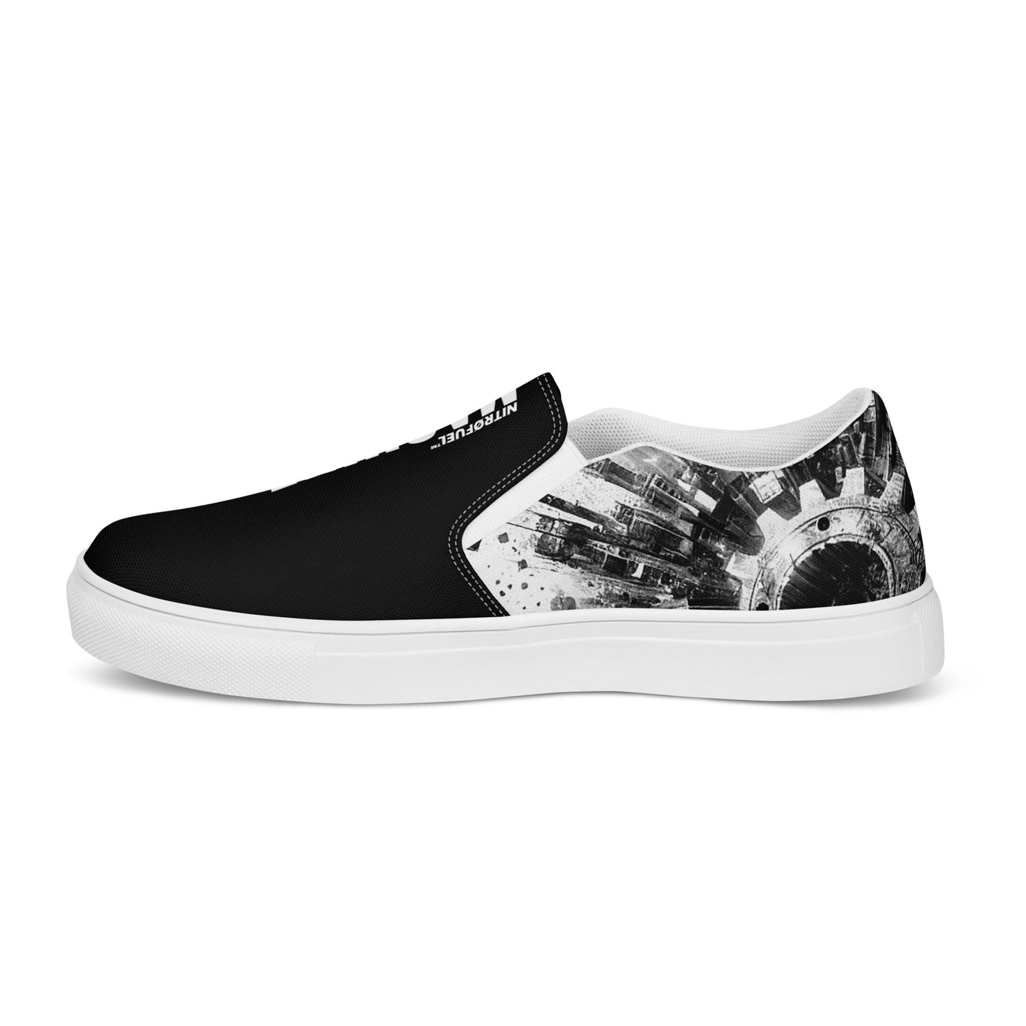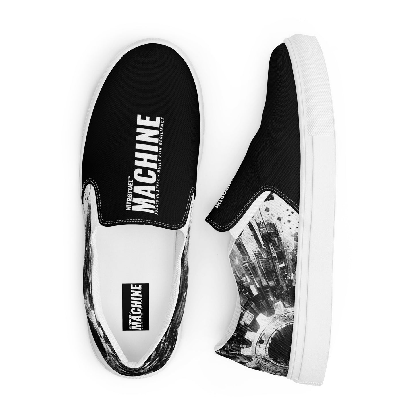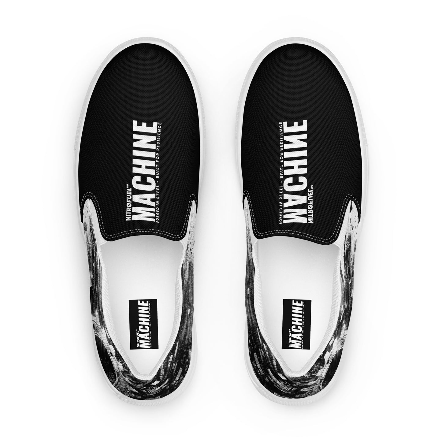 These slip-on canvas shoes combine all-day comfort with a bold edge. Featuring a striking NITRØFUEL™ MACHINE design and mirrored branding, they’re made for those who move with purpose—whether on the streets or in their element. The removable soft insoles and durable rubber outsoles ensure a comfortable, adaptable fit, while the bold branding fuels your mindset. Slip in. Step up. Keep moving.